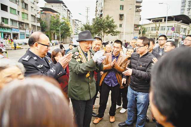 四月三日,墊江縣烈士陵園,渠吉堂老人與群眾交流。首席記者 謝智強(qiáng) 攝