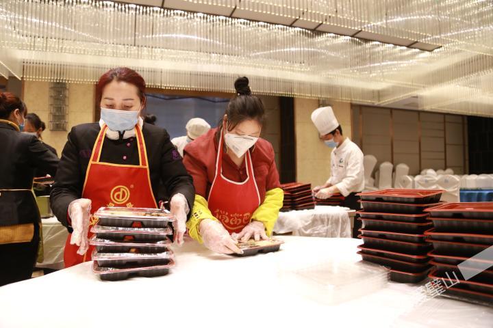 據(jù)悉,為配合防疫一線工作人員堅(jiān)決打贏疫情防控阻擊戰(zhàn),區(qū)機(jī)關(guān)事務(wù)局聯(lián)合綠島大飯店、錦宏居飯店,從2月7日起開(kāi)始為璧泉街道、璧城街道及青杠街道等防控排查卡點(diǎn)工作人員提供午餐和晚餐保障,一直持續(xù)到各道口卡點(diǎn)撤銷為止。每天餐前,相關(guān)工作人員都精心準(zhǔn)備菜肴,木耳肉絲、紅燒豬蹄、白灼菜心……每天的菜品都不相同,盡量做到營(yíng)養(yǎng)均衡、品種豐富。