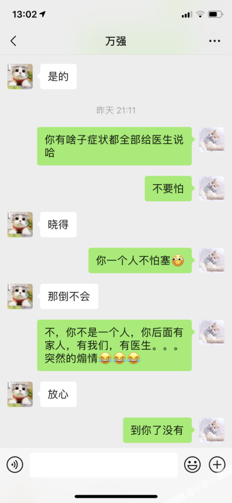 從萬強被醫(yī)院接走后到第二天凌晨1點多,王小琴一直在微信上陪著萬強一路抽血、照CT、等待結果,直到萬強情緒穩(wěn)定互問晚安后,王小琴才放下了手機。2月4日最新消息,經過多次檢查,萬強已排除患新冠肺炎可能。