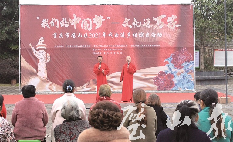 璧山報(bào)訊(記者 朱大亮 通訊員 楊雪梅 文/圖)10月28日,區(qū)文化旅游委在河邊鎮(zhèn)組織開展了“我們的中國(guó)夢(mèng)”——文化進(jìn)萬(wàn)家2021年戲曲進(jìn)鄉(xiāng)村演出活動(dòng)。