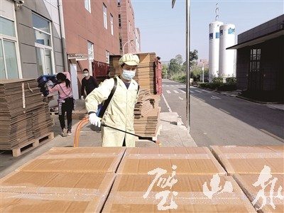 工作人員給貨物消毒