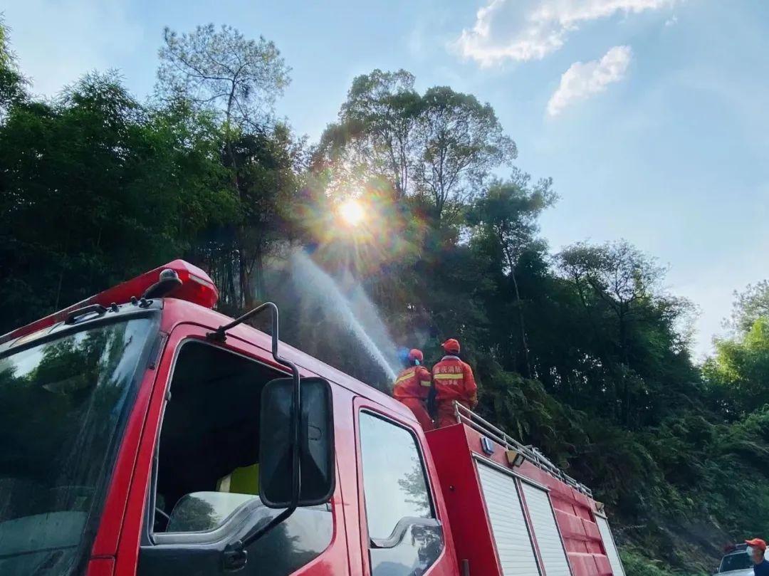 8月24日上午,火勢蔓延至八塘鎮(zhèn)陽龍村彭家埡口,隨時有可能引發(fā)周邊民房起火。值守在此的璧山支隊消防救援人員強忍著火烤、煙熏和高溫,通過消防車水炮結合,在民兵的配合下迅速控制了現(xiàn)場火勢,守衛(wèi)了居民生命財產安全。群眾看到大汗琳琳、被煙火熏黑的消防救援人員面部后,連連稱贊并表示感謝。