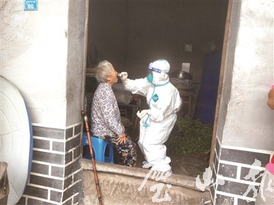 青杠街道醫(yī)務(wù)人員上門為行動(dòng)不便的老人采集核酸