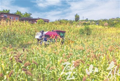 近日,璧泉街道鷹嘴社區(qū)股份合作社的高粱熟了,一串串深褐色的高粱穗沉甸甸掛在桿頭,收割機在高粱地里來回穿梭,一派繁忙的秋收景象。