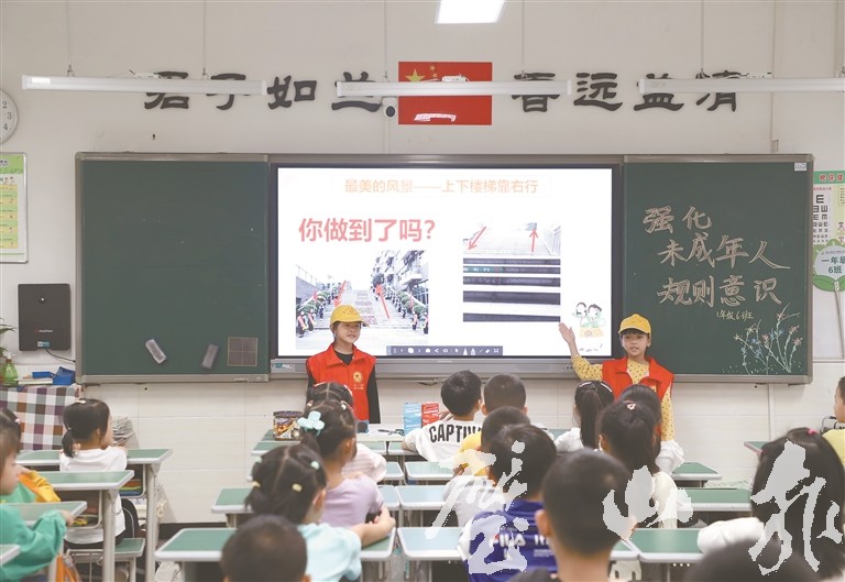 在劍山實驗小學(xué),學(xué)生用實例講解遵規(guī)守紀(jì)的重要性。