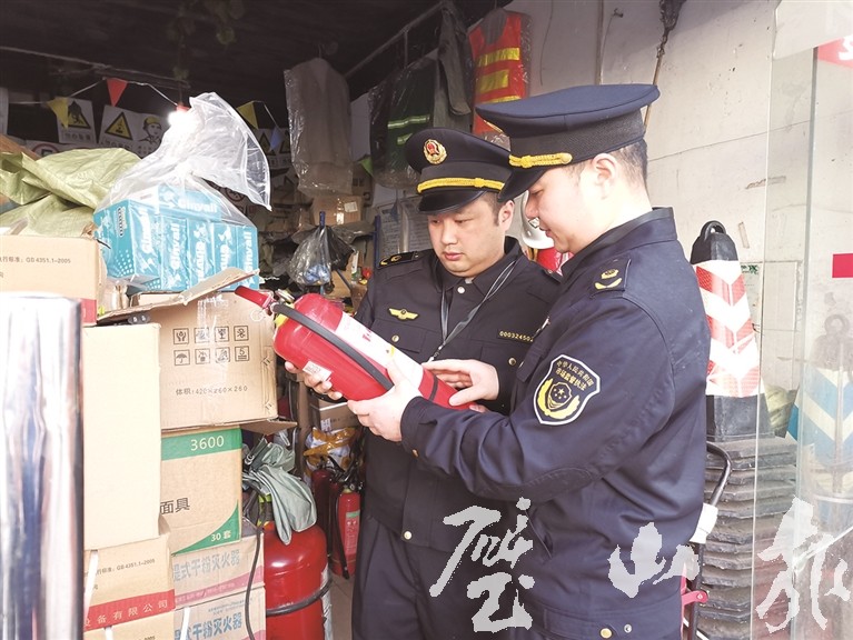 執(zhí)法人員對(duì)消防產(chǎn)品進(jìn)行嚴(yán)格檢查