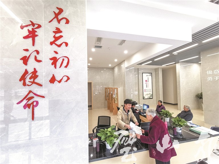 鳳凰社區(qū),社區(qū)工作人員對來社區(qū)服務(wù)大廳咨詢、辦理業(yè)務(wù)的居民細(xì)心服務(wù)。