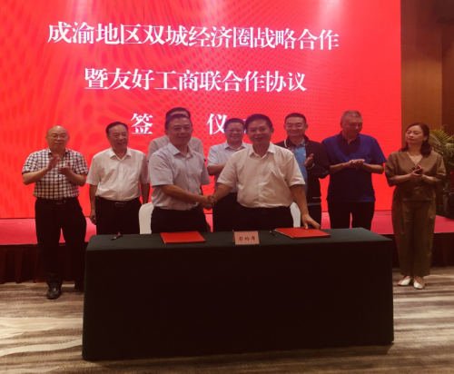 同時(shí)區(qū)工商聯(lián)分別和綿陽、德陽兩地工商聯(lián)簽訂成渝地區(qū)雙城經(jīng)濟(jì)圈戰(zhàn)略合作協(xié)議并建立友好工商聯(lián)。