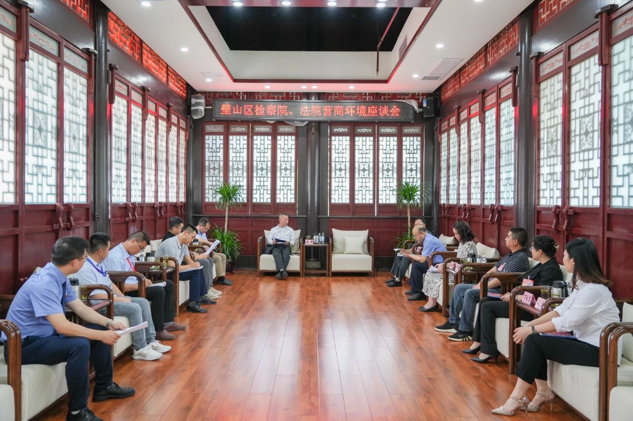 5月24日,璧山法院聯(lián)合璧山檢察院召開營商環(huán)境座談會。璧山區(qū)人民檢察院黨組書記、檢察長歐彬,市人大代表馮艷、蔣學科、萬家琴出席座談會。