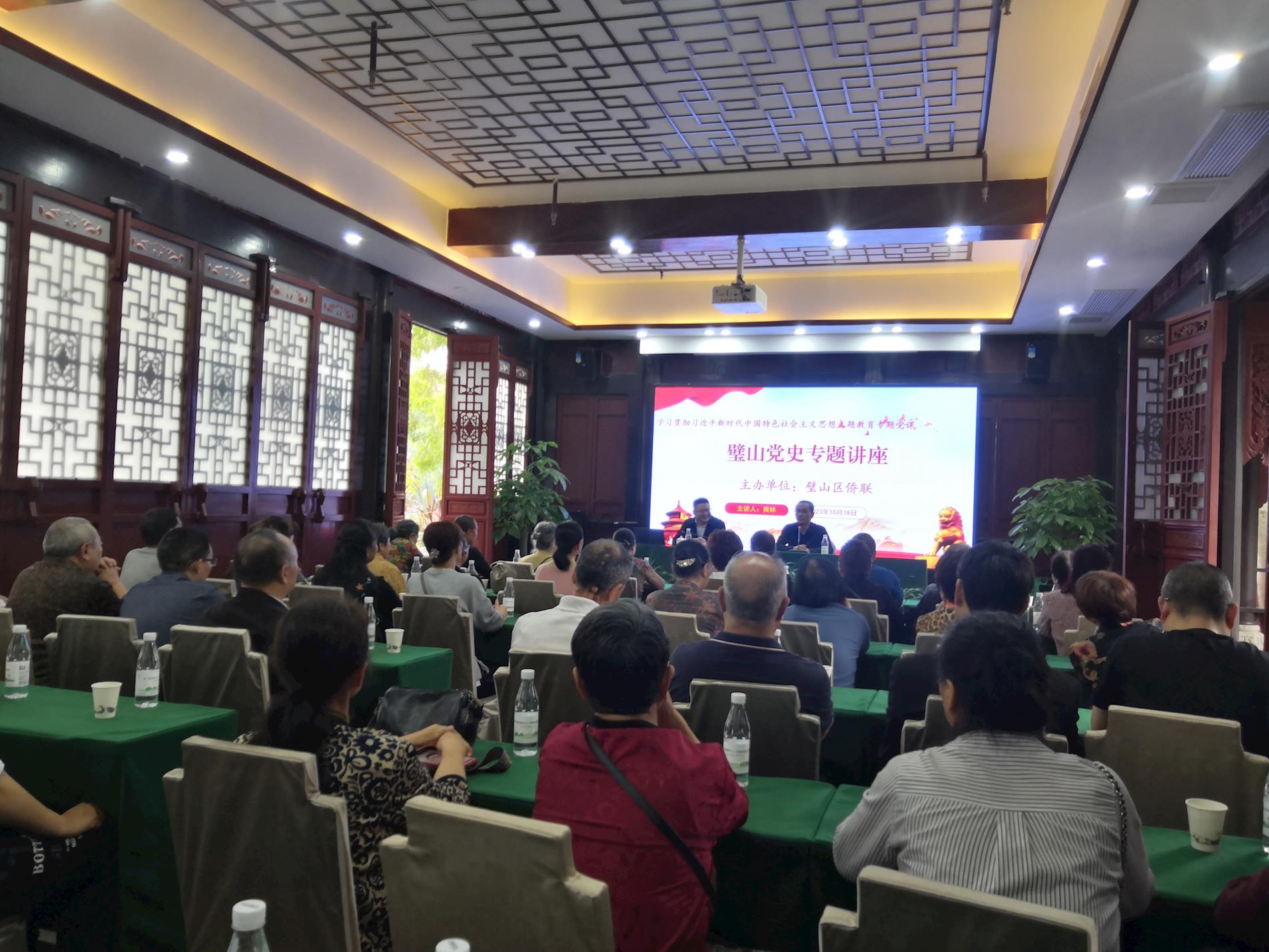 10月18日下午,區(qū)僑聯(lián)按照學(xué)習(xí)貫徹習(xí)近平新時(shí)代中國(guó)特色社會(huì)主義思想主題教育的工作安排,特邀區(qū)委黨史研究室原主任黃林在秀湖水街僑胞之家為僑眷屬開(kāi)展璧山區(qū)黨史專(zhuān)題講座,40余名僑眷屬參加,胡正好主席主持活動(dòng)。