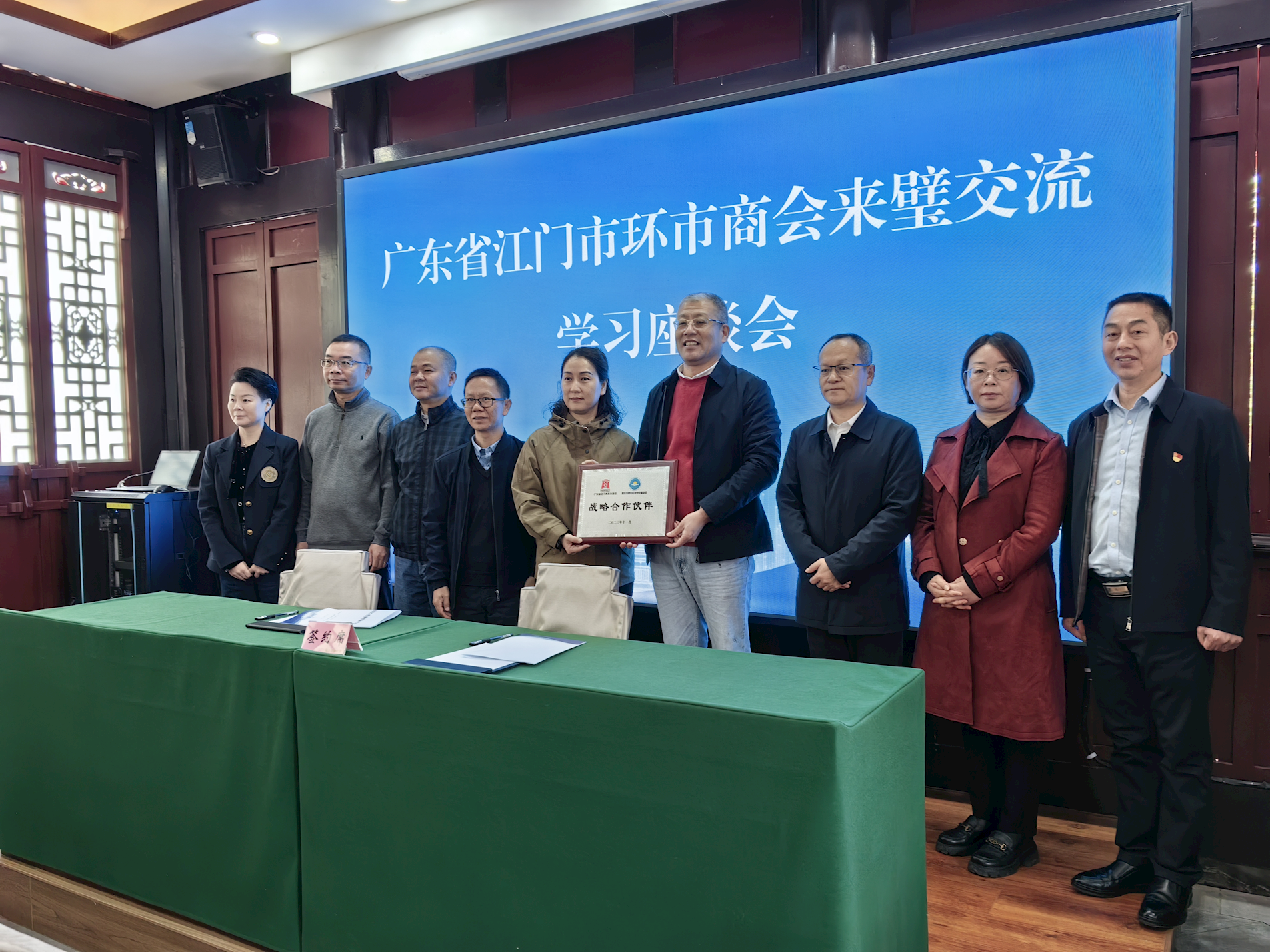11月17日,廣東省江門市蓬江區(qū)環(huán)市街道商會與璧山區(qū)璧泉街道商會在“企業(yè)之家”簽署戰(zhàn)略合作伙伴協(xié)議。璧山區(qū)工商聯(lián)、廣東省江門市蓬江區(qū)工商聯(lián)負(fù)責(zé)人以及30余名兩地企業(yè)家參加了座談見證簽約。
