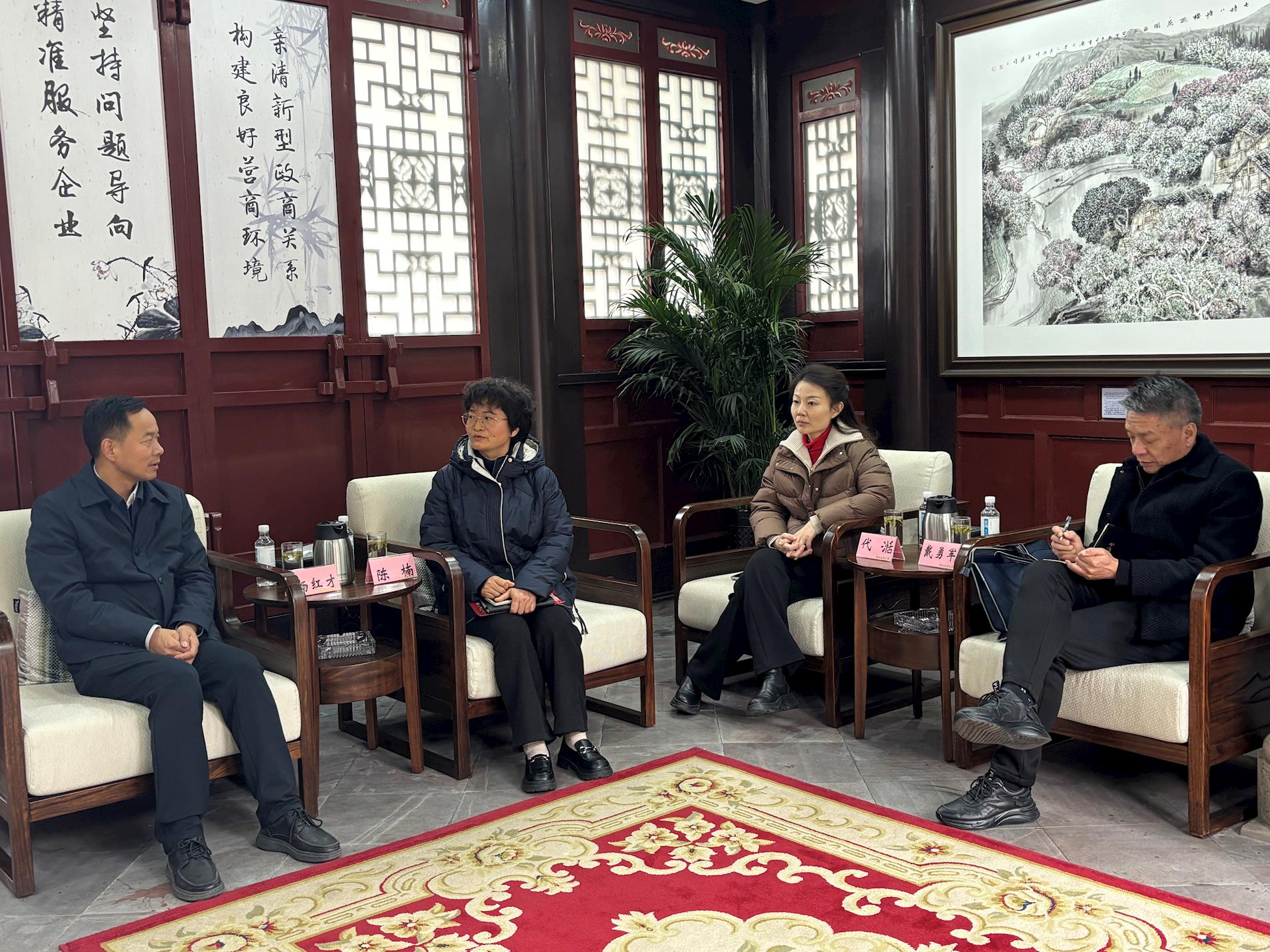 1月15日,湖北省襄陽市委統(tǒng)戰(zhàn)部副部長、市工商聯(lián)黨組書記楊紅才一行調(diào)研“企業(yè)之家”,區(qū)工商聯(lián)秘書長陳楠陪同調(diào)研并開展座談交流。