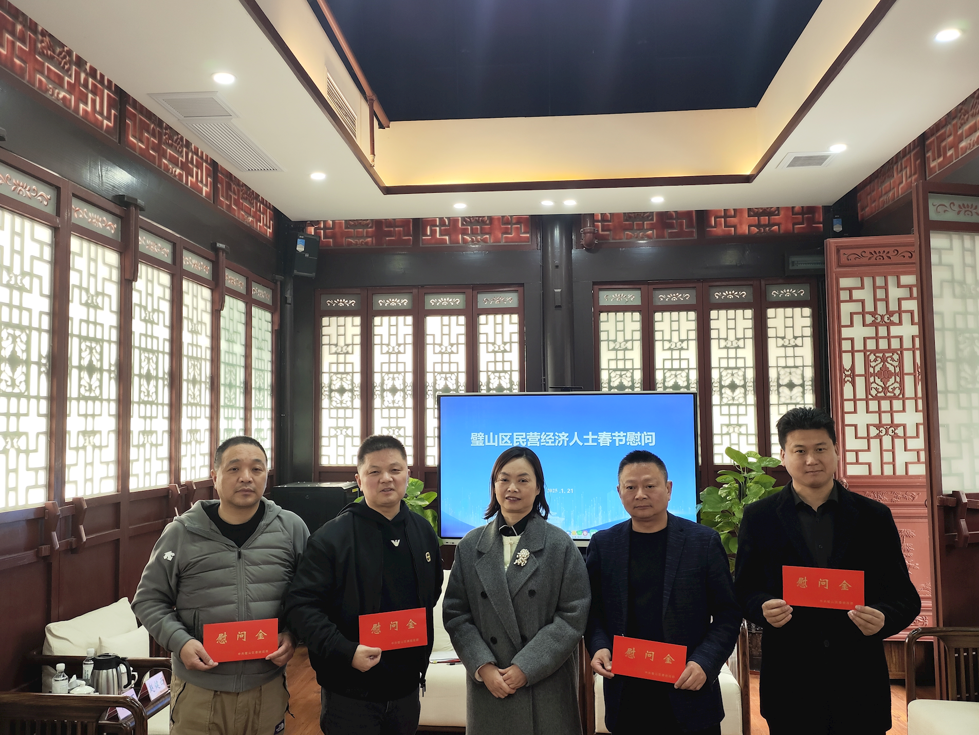 1月21日,區(qū)委統(tǒng)戰(zhàn)部、區(qū)工商聯(lián)在“企業(yè)之家”召開璧山區(qū)民營經(jīng)濟人士春節(jié)慰問活動。全區(qū)民營企業(yè)代表約13名參加了活動。