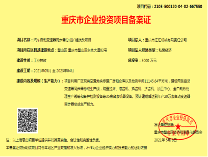 5月8日項(xiàng)目已完成備案,決定2021年6月動(dòng)工,爭(zhēng)取盡快投產(chǎn)。