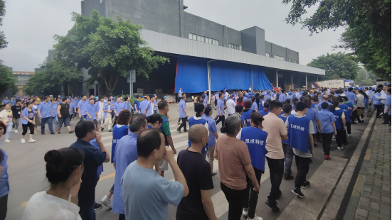 6月25日16時,重慶凱成各車間的消防警鈴急促響起,全廠消防安全演練正式拉開帷幕。短短兩三分鐘內(nèi),各部門近千名員工已從工作崗位撤離至一號碼頭臨時安全集中點。
