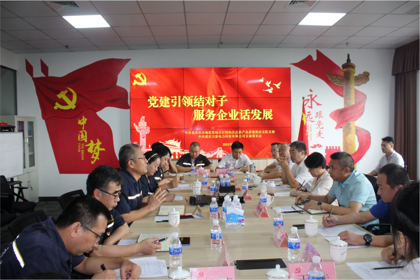 8月24日,中共重慶市市場(chǎng)監(jiān)管綜合行政執(zhí)法總隊(duì)產(chǎn)品質(zhì)量執(zhí)法支隊(duì)支部與中共重慶萬泰電力科技有限公司支部,在重慶萬泰電力科技有限公司黨員活動(dòng)室,開展主題為“黨建引領(lǐng)結(jié)對(duì)子 服務(wù)企業(yè)話發(fā)展”的支部共建活動(dòng)。此次支部共建活動(dòng),不僅豐富了基層黨組織工作開展模式,提升黨建與經(jīng)營結(jié)合力度,同時(shí)增強(qiáng)了市場(chǎng)監(jiān)管局執(zhí)法干部的宗旨意識(shí)、服務(wù)意識(shí),從而切實(shí)幫助企業(yè)解決實(shí)際問題,促進(jìn)企業(yè)高質(zhì)量發(fā)展。