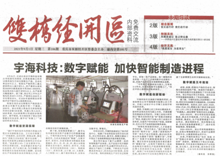 2021年9月1日,《宇海科技:數(shù)字賦能 加快智能制造進(jìn)程》在雙橋經(jīng)開區(qū)報(bào)第186期頭版頭條刊登,向社會(huì)展現(xiàn)了宇海科技推進(jìn)智慧工廠、數(shù)字化車間建設(shè)進(jìn)程。