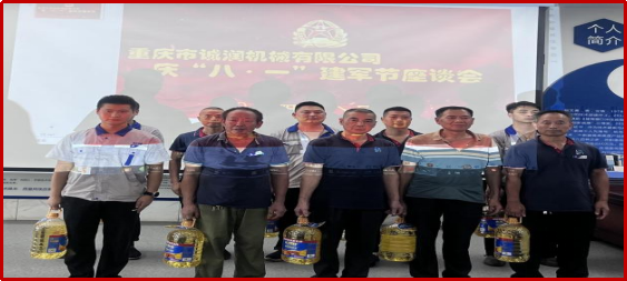 8月1日,在“八一”建軍節(jié)之際,重慶市誠(chéng)潤(rùn)機(jī)械有限公司召開慶祝"八一"建軍節(jié)座談會(huì),工會(huì)主席呂紅飛和在崗11名退役軍人參加了座談會(huì)。