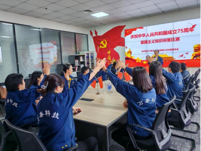 在愛(ài)國(guó)知識(shí)搶答賽環(huán)節(jié),大家對(duì)一些耳熟能詳?shù)闹R(shí)紛紛踴躍舉手搶答,現(xiàn)場(chǎng)一片歡樂(lè)。通過(guò)知識(shí)搶答,大家油然而生有中國(guó)人的自豪感。