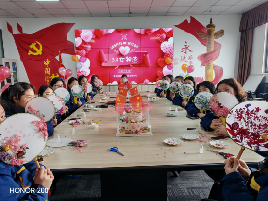 隨著制作的深入,一把把獨一無二、精美絕倫的團扇在女神們的巧手下逐漸成型。這些團扇,不僅承載著大家對美的獨特詮釋,更是這個節(jié)日里最溫暖的紀念。緊接著,大家紛紛拿起手機,以手中的佳作為襯托,擺出“千呼萬喚始出來,猶抱琵琶半遮面”的姿態(tài),定格下這美好的瞬間。照片里,她們或微笑嫣然,或沉醉創(chuàng)作,團扇上的花朵與她們臉上的光彩相互映襯,構成了一幅幅動人的畫面,生動展現了女性在工作之余的別樣魅力與風采。