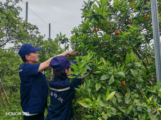工作隊(duì)員們左手提著籃筐,右手拿著剪刀,穿梭在郁郁蔥蔥的果林中。這里種植著柚子、檸檬以及多個(gè)品種的橙子,雖然果實(shí)的外觀并不追求市場(chǎng)的“顏值標(biāo)準(zhǔn)”,但每一顆都凝聚著大自然的饋贈(zèng)——汁多純正,入口清甜?!耙弦豢?,滿是果香,甜在嘴里,戀在心里。”工作隊(duì)員小吳感慨道。這些原生態(tài)的果實(shí)不僅讓人忘卻城市的喧囂,更讓人感受到大自然的純粹與快樂。短短時(shí)間,工作隊(duì)就采摘了滿滿幾大筐果實(shí),為農(nóng)戶帶來了實(shí)實(shí)在在的收益。