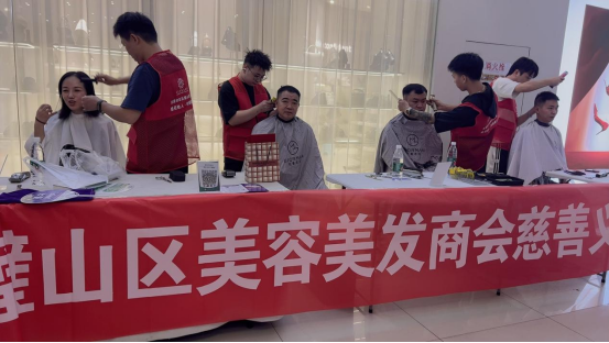 在活動(dòng)現(xiàn)場(chǎng),太陽(yáng)風(fēng)、佐蔓造型、 藝匠造型 、A-遇見(jiàn)Mr等會(huì)員企業(yè)派出6名義工,在現(xiàn)場(chǎng)設(shè)置了剪發(fā)攤位,開(kāi)展義剪活動(dòng);柏菊醫(yī)療美容診所、雨絲蔓、今容妝等3家會(huì)員企業(yè)將部分美容產(chǎn)品開(kāi)展義賣。此次活動(dòng)所得款項(xiàng)1200元全部捐贈(zèng)給慈善會(huì),用于為失依兒童護(hù)航。