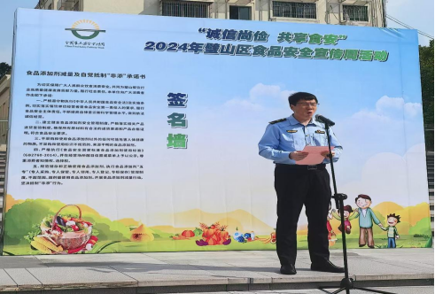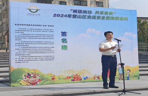 10月15日下午,璧山區(qū)2024年食品安全宣傳周啟動(dòng)儀式暨集中宣傳活動(dòng)在大成廣場(chǎng)隆重舉行,此次活動(dòng)的主題是“誠(chéng)信尚儉共享食安--食品添加劑減量及自覺(jué)抵制‘非添’宣傳”,旨在引導(dǎo)廣大餐飲經(jīng)營(yíng)者在生產(chǎn)經(jīng)營(yíng)中進(jìn)行綠色生產(chǎn)、綠色經(jīng)營(yíng)和提供綠色消費(fèi)產(chǎn)品。區(qū)食藥安辦、區(qū)發(fā)展改革委、區(qū)公安局、區(qū)城市管理局、區(qū)農(nóng)業(yè)農(nóng)村委、區(qū)文化旅游委、區(qū)衛(wèi)生健康委、區(qū)市場(chǎng)監(jiān)管局、區(qū)科協(xié)和各鎮(zhèn)街分管負(fù)責(zé)人、區(qū)餐飲企業(yè)代表和當(dāng)?shù)厝罕娊?00人參加了此次活動(dòng)?;顒?dòng)現(xiàn)場(chǎng),各部門及鎮(zhèn)街工作人員搭臺(tái)擺攤,發(fā)放宣傳資料,為群眾和餐飲企業(yè)負(fù)責(zé)人宣講食品安全知識(shí),接受群眾咨詢。