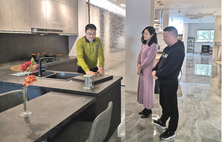 走訪中,嘉鈺門(mén)窗企業(yè)負(fù)責(zé)人李友通過(guò)對(duì)外交流學(xué)習(xí),率先引進(jìn)智能化門(mén)窗,并就智能一體化門(mén)窗的設(shè)計(jì)進(jìn)行了演示,通過(guò)利用控制裝置,實(shí)現(xiàn)門(mén)窗開(kāi)合狀態(tài)的自主切換,減少人們大量的人力需求,同時(shí)迎合現(xiàn)代化市場(chǎng)發(fā)展趨勢(shì),材質(zhì)不再局限于玻璃,功能更加豐富,增加防藍(lán)光功能,兼顧人們的生活需求。本地企業(yè)億牌櫥柜負(fù)責(zé)人徐波對(duì)智能家居也頗有研究,通過(guò)廣交會(huì)學(xué)習(xí)的先進(jìn)知識(shí)理念,打造櫥柜獨(dú)具匠心的設(shè)計(jì),大膽創(chuàng)新,巧用原材料,打破了傳統(tǒng)的設(shè)計(jì)理念,將美觀、簡(jiǎn)潔、環(huán)保、創(chuàng)新和實(shí)用集為一體,兼具空間利用和調(diào)節(jié)、觸摸等功能,在更新迭代的現(xiàn)代化家居產(chǎn)品中,智能化產(chǎn)品獨(dú)樹(shù)一幟。