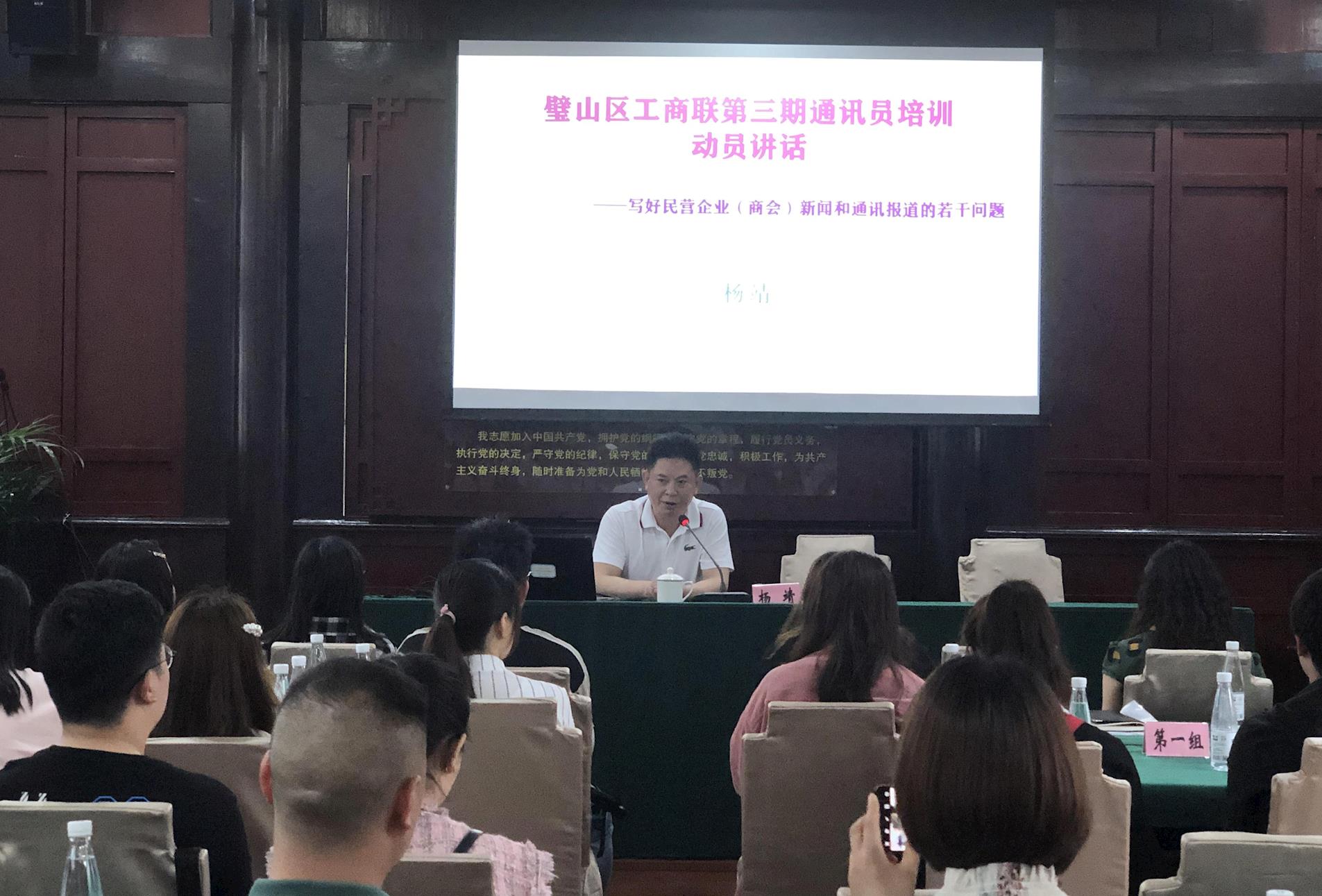 5月10日上午,重慶市璧山區(qū)工商業(yè)聯(lián)合會(huì)第三期通訊員線下培訓(xùn)班在“企業(yè)之家”舉行了隆重的開班儀式。區(qū)政協(xié)副主席、工商聯(lián)主席楊靖參會(huì)并作通訊員培訓(xùn)動(dòng)員講話,區(qū)工商聯(lián)副主席彭莉主持開班儀式。