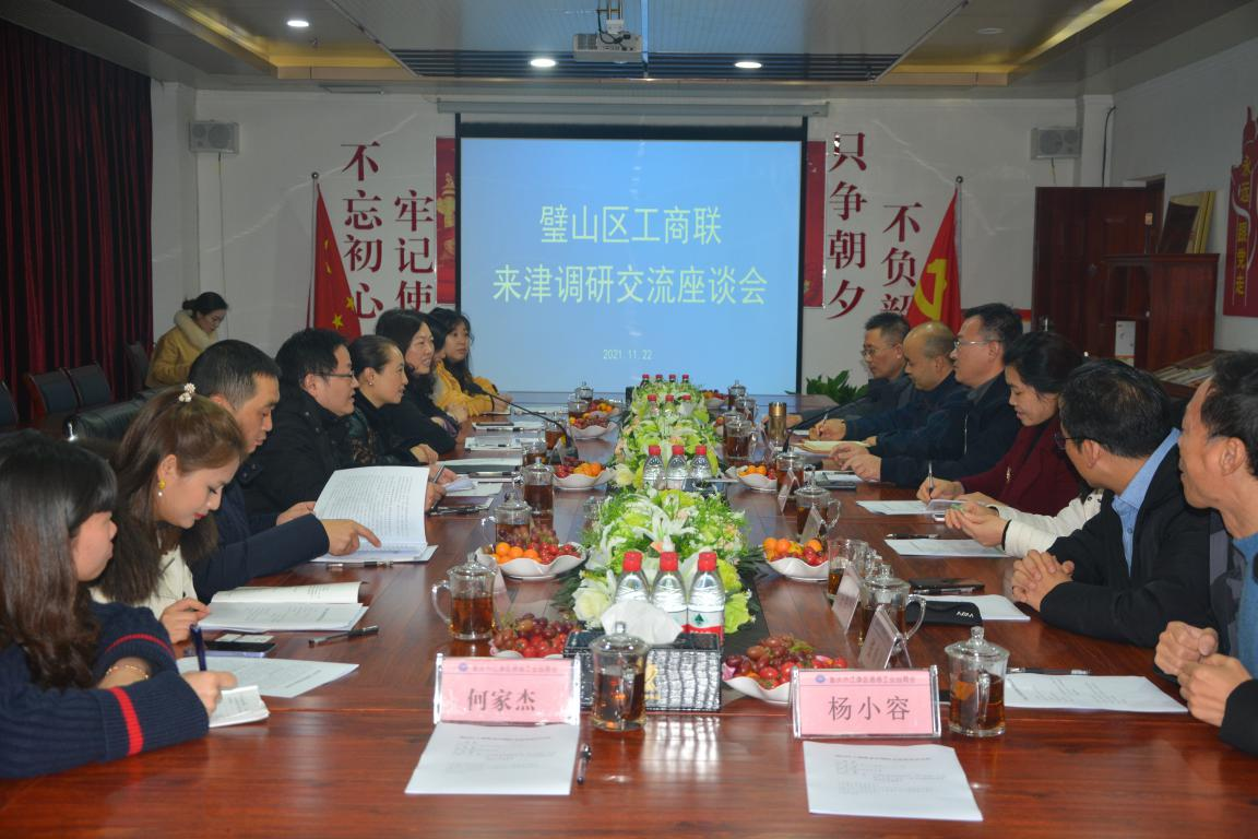 2021年11月22日,區(qū)政協(xié)副主席、工商聯(lián)主席劉華,區(qū)工商聯(lián)副主席汪國琴,區(qū)工商聯(lián)秘書長唐波一行到江津走訪調(diào)研,江津區(qū)政協(xié)黨組成員、工商聯(lián)主席鄒勇,江津區(qū)委統(tǒng)戰(zhàn)部副部長、工商聯(lián)黨組書記、常務(wù)副主席龔元祥等陪同調(diào)研。