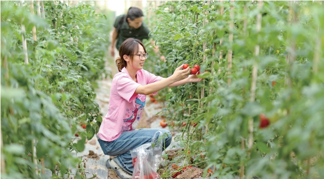 7月1日,七塘鎮(zhèn)番茄小鎮(zhèn),游客在蔬菜大棚內(nèi)采摘番茄。“璧山番茄”具有口感適中、抗逆性強、耐儲運等特點,突出表現(xiàn)為果型優(yōu)美、糖酸比高、風(fēng)味濃郁、營養(yǎng)品質(zhì)優(yōu)異。近年來,我區(qū)通過出臺一系列扶持政策,統(tǒng)一制定入選標(biāo)準(zhǔn)、嚴(yán)格把控入選產(chǎn)品、加大推廣力度等,為區(qū)域農(nóng)特產(chǎn)品品牌建設(shè)賦能,其中新認(rèn)證綠色食品23個、重慶名牌農(nóng)產(chǎn)品9個,“璧山葡萄”“璧山番茄”入選全國名特優(yōu)新農(nóng)產(chǎn)品名錄。