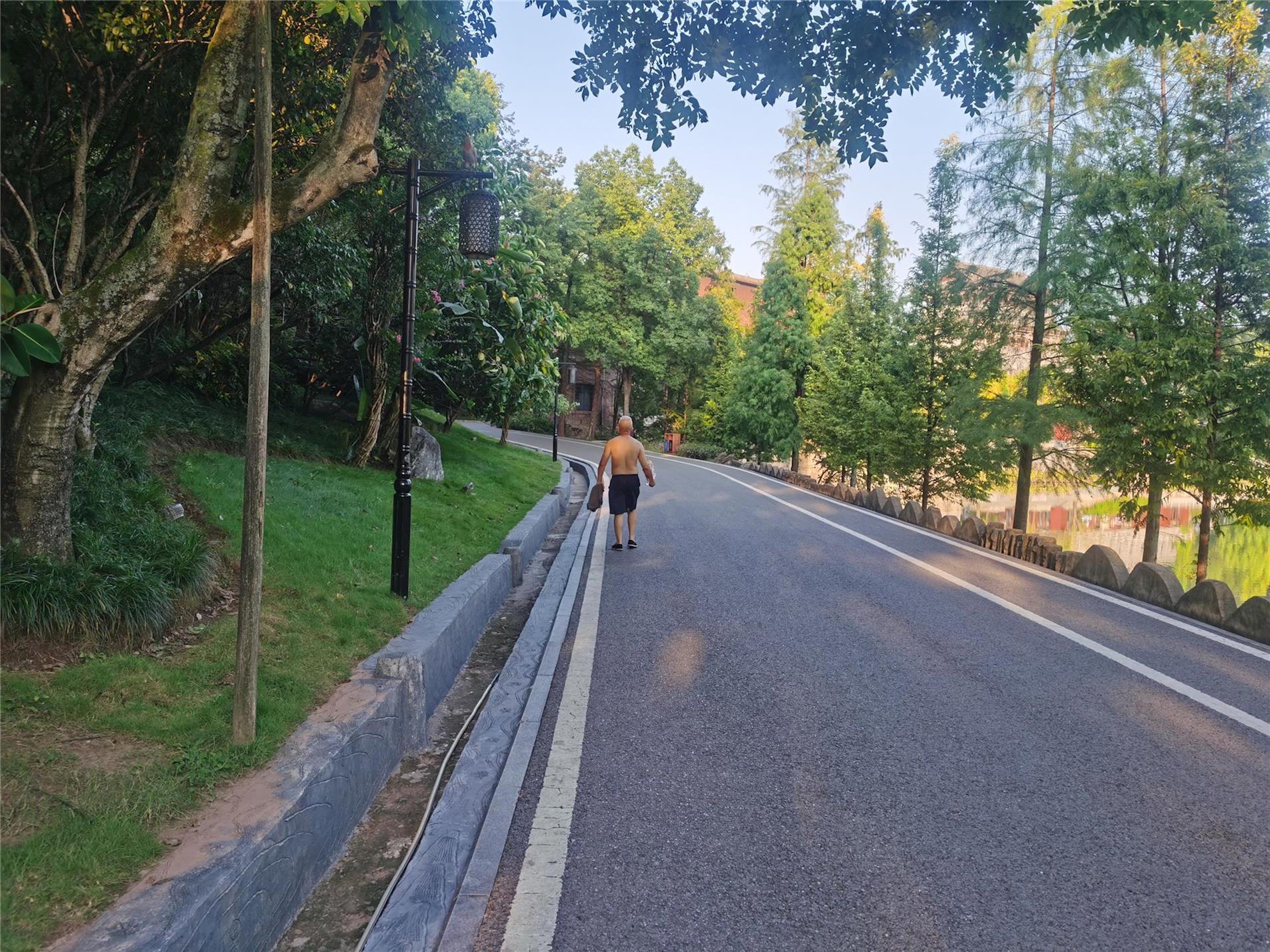 連日來,記者走訪發(fā)現(xiàn),公園、景區(qū)整體環(huán)境秩序良好,但仍可見到不文明現(xiàn)象的發(fā)生,十分影響城市形象。圖為市民未穿上衣在公園散步。