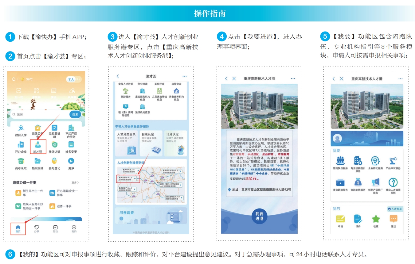在臨近開港之際,人才港數(shù)字平臺貫通“渝才薈”,首批上線陪跑隊伍服務(wù)、專業(yè)機構(gòu)指引、企業(yè)孵化、產(chǎn)品中試、賽會路演、金融支持、創(chuàng)新產(chǎn)品推廣、璧山人才政策圖解等8個高頻事項辦理業(yè)務(wù)。人才、企業(yè)可根據(jù)自身需求,在“渝快辦”APP“渝才薈”服務(wù)專區(qū)享受“掌上”快捷辦理服務(wù)。