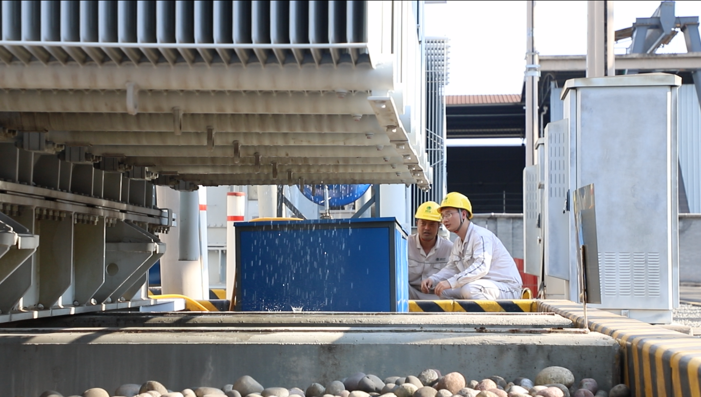 8月28日,在110千伏獅子變電站,一場(chǎng)特殊的“洗澡”降溫行動(dòng)正在進(jìn)行。在主變壓器旁,兩臺(tái)霧炮機(jī)正不停地噴灑著冰水混合物。這些細(xì)小的水霧通過大面積蒸發(fā),快速吸收變壓器主板的熱量,以確保其在高溫天氣下的穩(wěn)定運(yùn)行。