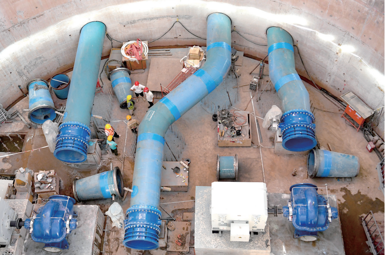 9月19日,渝西水資源配置工程鹽井河泵站,技術人員正在加快安裝調試設備。