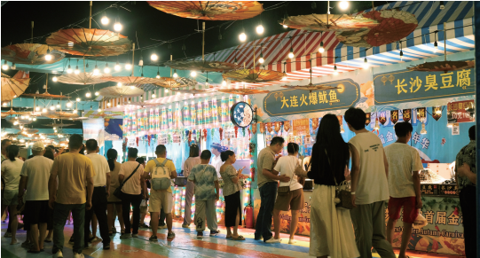 與之相隔的夢(mèng)界市集也是人來(lái)人往,這里不僅聚集了璧山糖畫(huà)、璧山兔、來(lái)鳳魚(yú)等本地特色美食,還匯聚了來(lái)自全國(guó)各地的特色美味小吃,直勾游客味蕾。市民及游客穿梭其中,盡享節(jié)日的歡樂(lè)氛圍。當(dāng)精彩的雜技與多樣美食碰撞在一起,掀起了一場(chǎng)獨(dú)具特色的群眾文化體驗(yàn)。