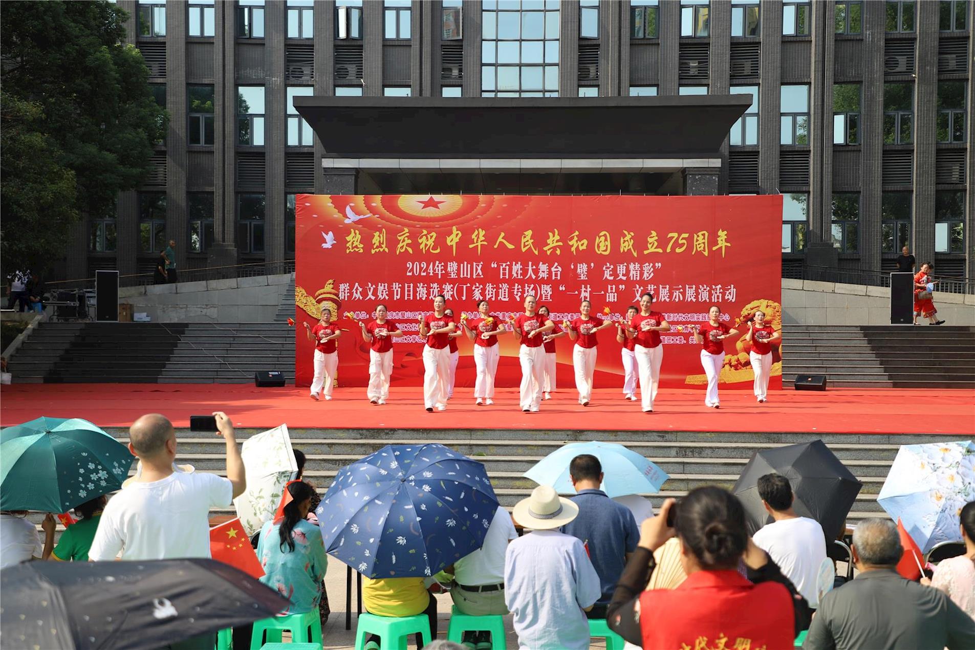 9月27日,2024年璧山區(qū)“百姓大舞臺 ‘璧’定更精彩”群眾文娛節(jié)目海選賽(丁家街道專場)暨“一村一品”文藝展示展演活動在南華廣場舉行。