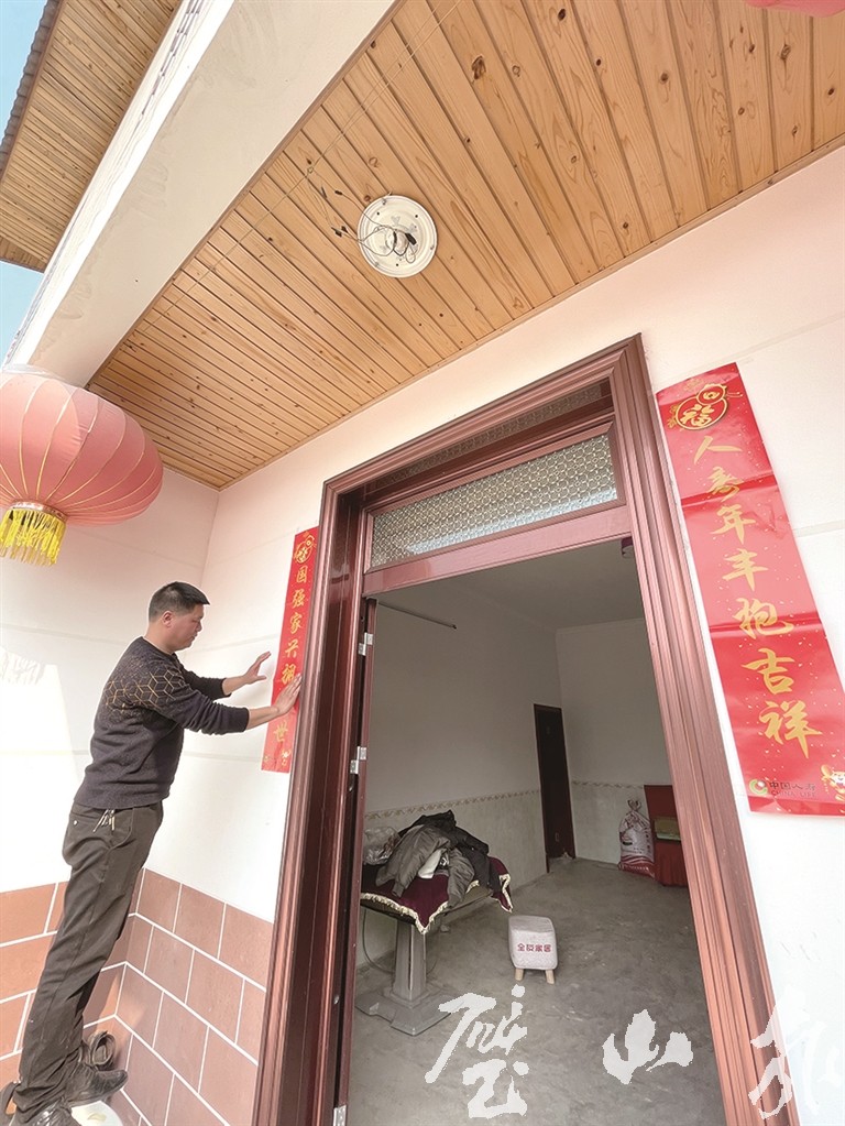 向波貼上春聯(lián),為農(nóng)家小院增添“年味”。