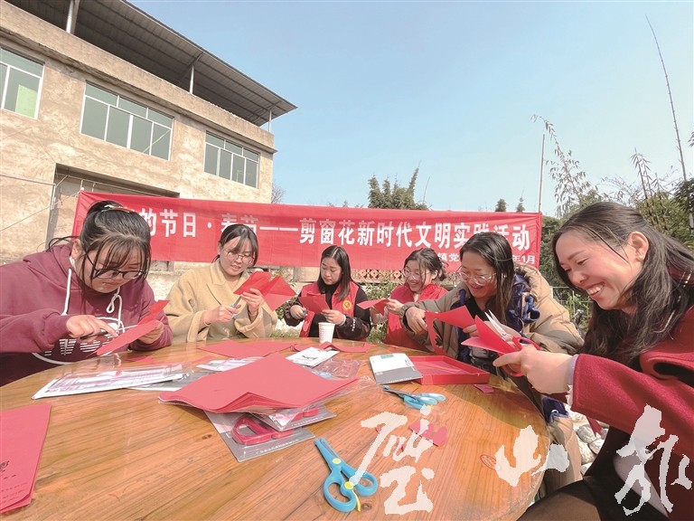 1月24日,正興鎮(zhèn)志愿者與團(tuán)結(jié)村村民在一起剪窗花。春節(jié)臨近,我區(qū)各地干部群眾以剪窗花、寫春聯(lián),舉辦歌舞演出等形式,喜迎虎年春節(jié)的到來,在歡聲笑語中寄托對美好生活的期許與祝福。