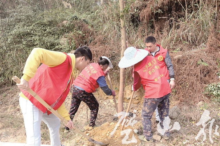 三合鎮(zhèn)志愿者開展義務(wù)植樹(記者 廖健韜 通訊員 郎鑫芮 攝)