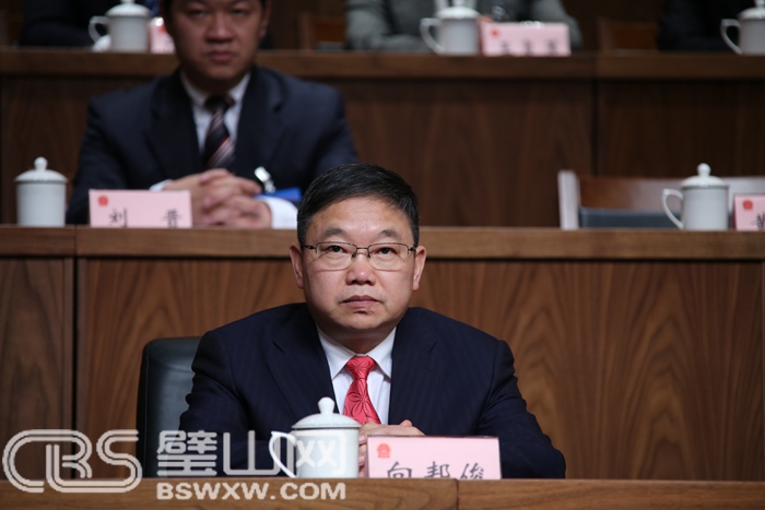 區(qū)政協(xié)主席向邦俊在主席臺前排就座