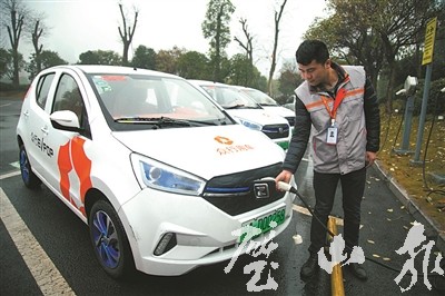 近日,記者從眾行用車運(yùn)營(yíng)中心獲悉,“眾行用車”新添400多輛眾泰云100s 、云100plus兩類4座型新能源汽車。此次新投用的新能源汽車,與之前投用的眾泰E200新能源汽車相比,空間更大,動(dòng)力更足,最高時(shí)速120公里/小時(shí),續(xù)航里程為180公里,價(jià)格為0.4元每分鐘。圖為工作人員給眾泰云新能源汽車充電。(記者 張承剛 攝)