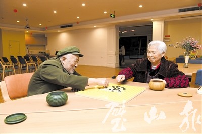 璧城街道大旺社區(qū)養(yǎng)老服務(wù)中心,老年人正在下棋。