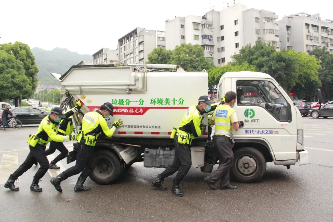 在考核過(guò)程中,一輛環(huán)衛(wèi)車在路口突然拋錨,驍騎隊(duì)員立即上前,合力將車輛推移到安全地帶,快速恢復(fù)路口暢通。