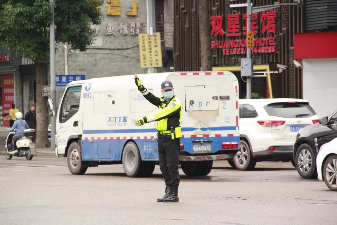 驍騎隊(duì)員以四人為一小組參與考核,一人擔(dān)任主指揮,負(fù)責(zé)掌控路口總體通行情況,另外三人擔(dān)任副指揮,根據(jù)主指揮手勢(shì)配合協(xié)助;在考核完畢后,主、副指揮輪換,確保全員在每個(gè)崗位都參與考核。