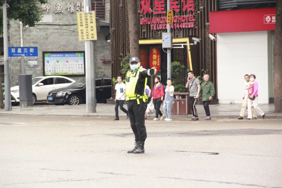 此次考核選在雙星大道金劍路路口,此路口交通情況復(fù)雜,車流、人流交錯(cuò),能更好的檢驗(yàn)驍騎隊(duì)員的實(shí)戰(zhàn)業(yè)務(wù)能力。