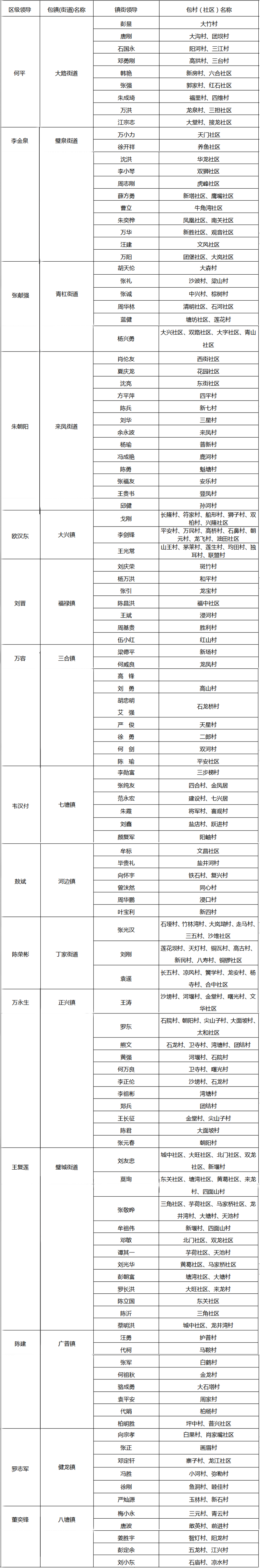 璧山區(qū)防汛救災(zāi)工作領(lǐng)導(dǎo)分片包干公示表