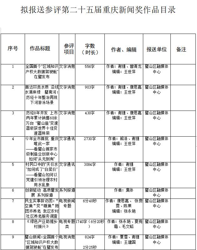 重慶市璧山區(qū)融媒體中心 關(guān)于擬報送參評第二十五屆重慶新聞獎作品的公示