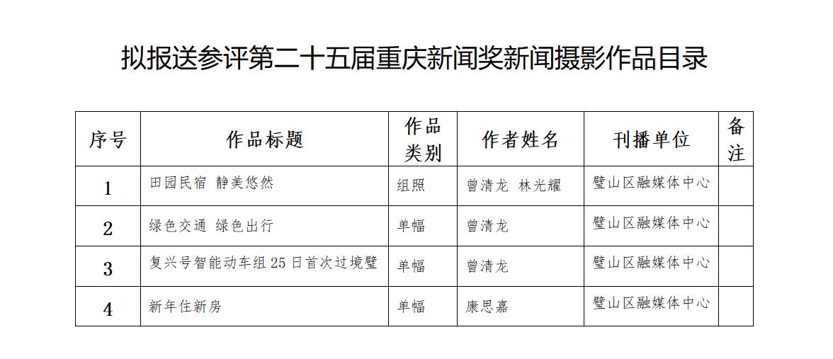 附件:擬報(bào)送參評第二十五屆重慶新聞獎(jiǎng)新聞攝影作品目錄