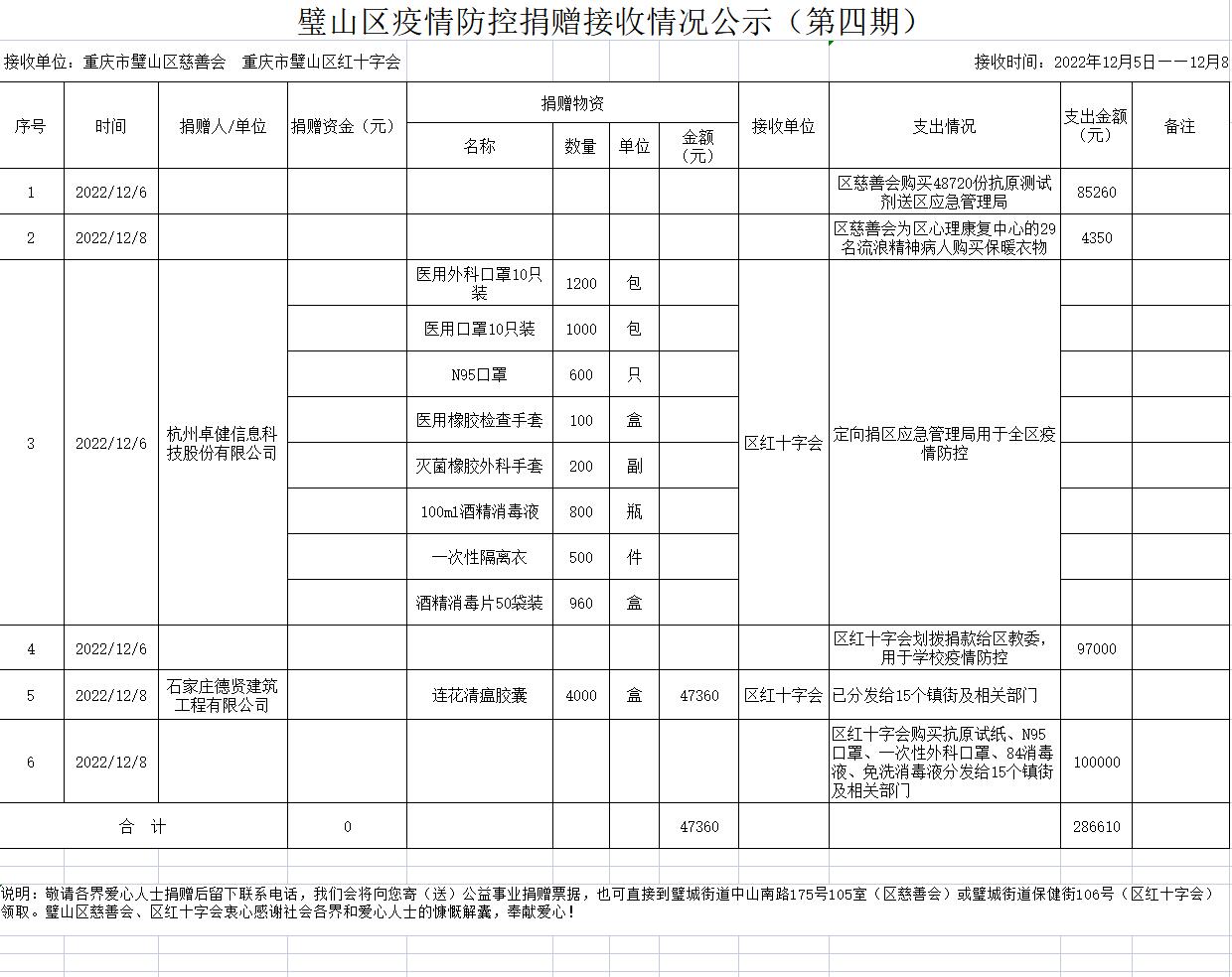 璧山區(qū)疫情防控捐贈接收情況公示(第四期)